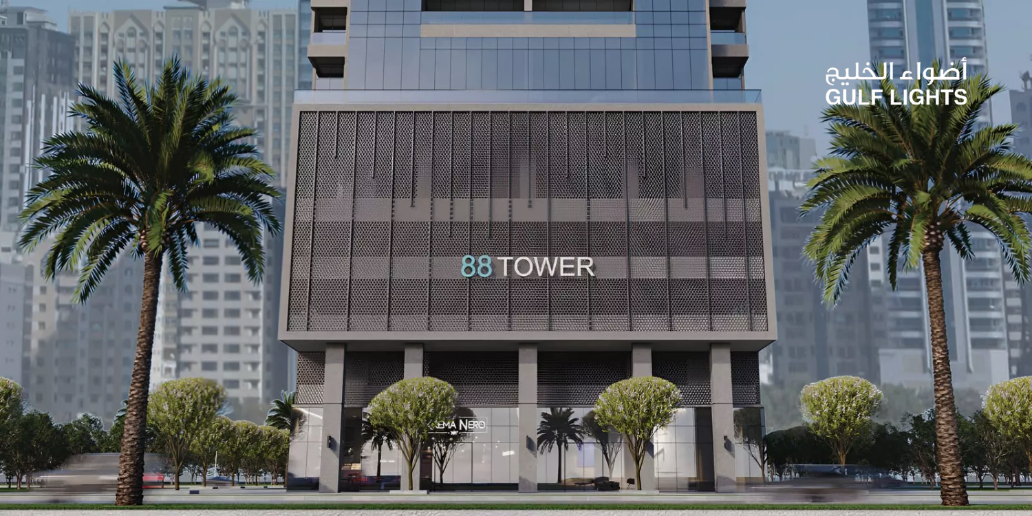 For 88 Tower in Al Khan, Sharjah, UAE, we delivered a comprehensive lighting solution encompassing the facade, interior, and landscape areas. The design was carefully tailored to highlight the tower’s modern architectural form and prime waterfront location. Through the use of refined lighting techniques and premium fixtures, we created a balanced ambiance that complements the building’s contemporary aesthetic. Each lighting element was chosen to enhance both visual appeal and functionality, ensuring an inviting environment that transitions effortlessly from day to night while reflecting the sophistication and prestige of the development.