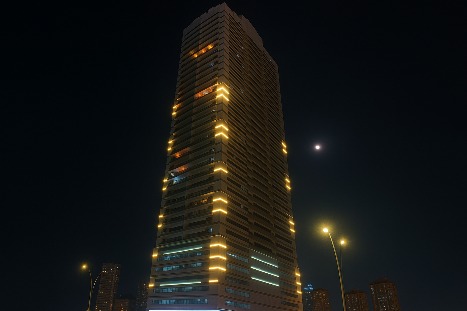 Abu Ghazaleh Tower in Sharjah embodies a modern and elegant architectural vision, distinguished by its clean lines and refined detailing. The lighting enhances the building’s interiors with a sense of warmth and sophistication, creating an inviting atmosphere throughout. Thoughtfully planned illumination highlights key design features while maintaining visual comfort and harmony. The result is a polished and contemporary environment that reflects both professionalism and timeless style