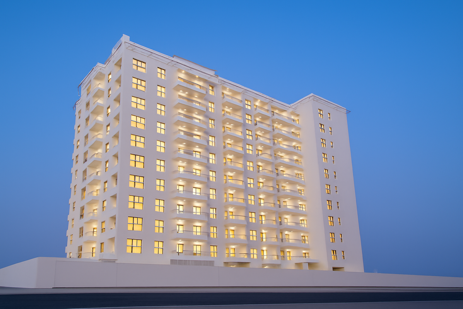 Al Nad Building in Nad Al Hamar, Dubai, showcases a contemporary architectural style defined by simplicity and elegance. The lighting enhances the building’s interior character, creating a welcoming and comfortable environment for occupants. With a focus on balance and visual harmony, the illumination brings out the design’s clean lines and modern aesthetic. The result is a refined atmosphere that combines functionality with understated sophistication, perfectly complementing the building’s overall vision.