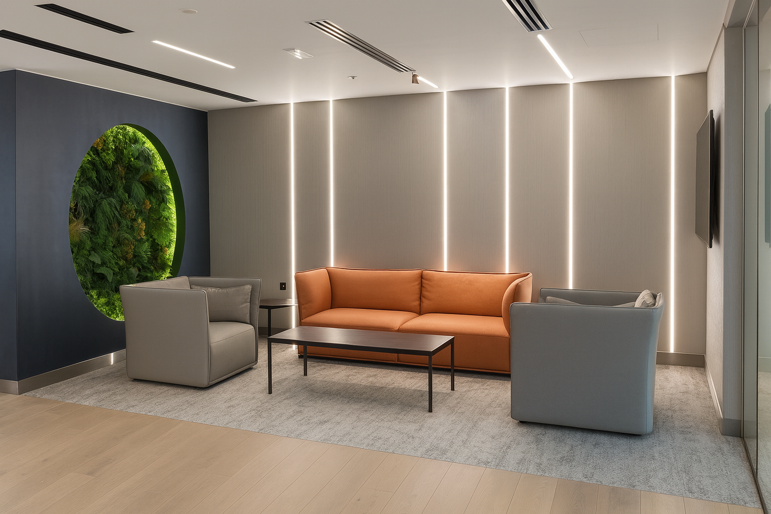 For Al Saud Real Estate Head Office in Sharjah, UAE, we created a lighting environment that emphasizes professionalism, comfort, and modern corporate identity. The illumination highlights the office’s clean architectural layout and refined finishes, bringing a sense of clarity and balance to every workspace. With thoughtfully distributed ambient light and subtle accenting, the office achieves a polished, welcoming atmosphere that supports productivity while reflecting the company’s strong and established presence.