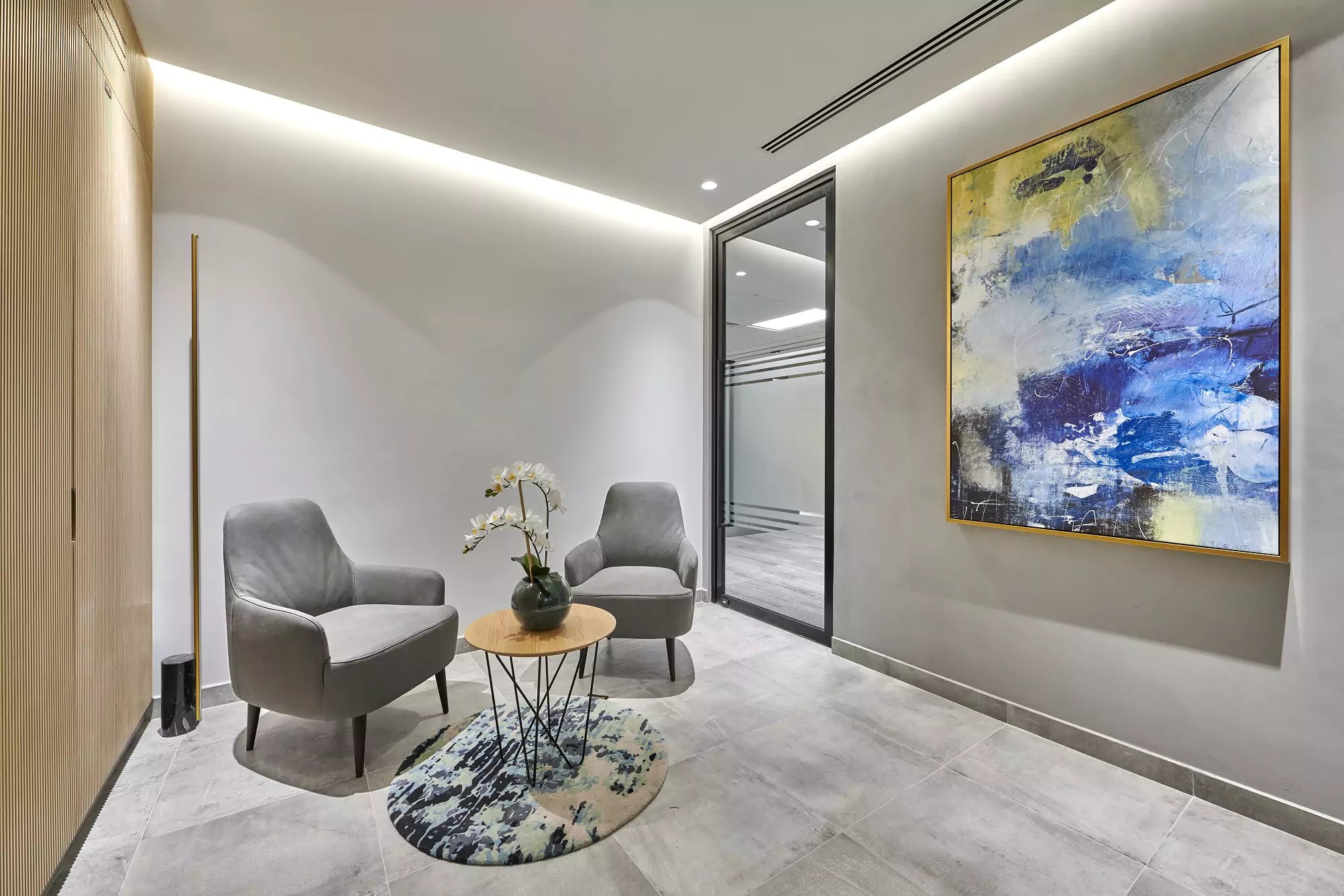 Our lighting design for Bluecrest Capital Management's head office at One Central, Dubai World Trade Center, enhances the sophisticated and professional atmosphere of the space. By strategically illuminating key areas, we created a dynamic and modern environment that reflects the company’s prestige. Our carefully crafted lighting solutions not only highlight architectural features but also improve the functionality of the office, fostering a productive and impressive workspace for both employees and visitors.