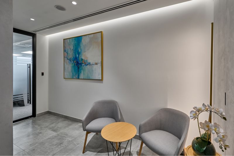 Our lighting design for Bluecrest Capital Management's head office at One Central, Dubai World Trade Center, enhances the sophisticated and professional atmosphere of the space. By strategically illuminating key areas, we created a dynamic and modern environment that reflects the company’s prestige. Our carefully crafted lighting solutions not only highlight architectural features but also improve the functionality of the office, fostering a productive and impressive workspace for both employees and visitors.