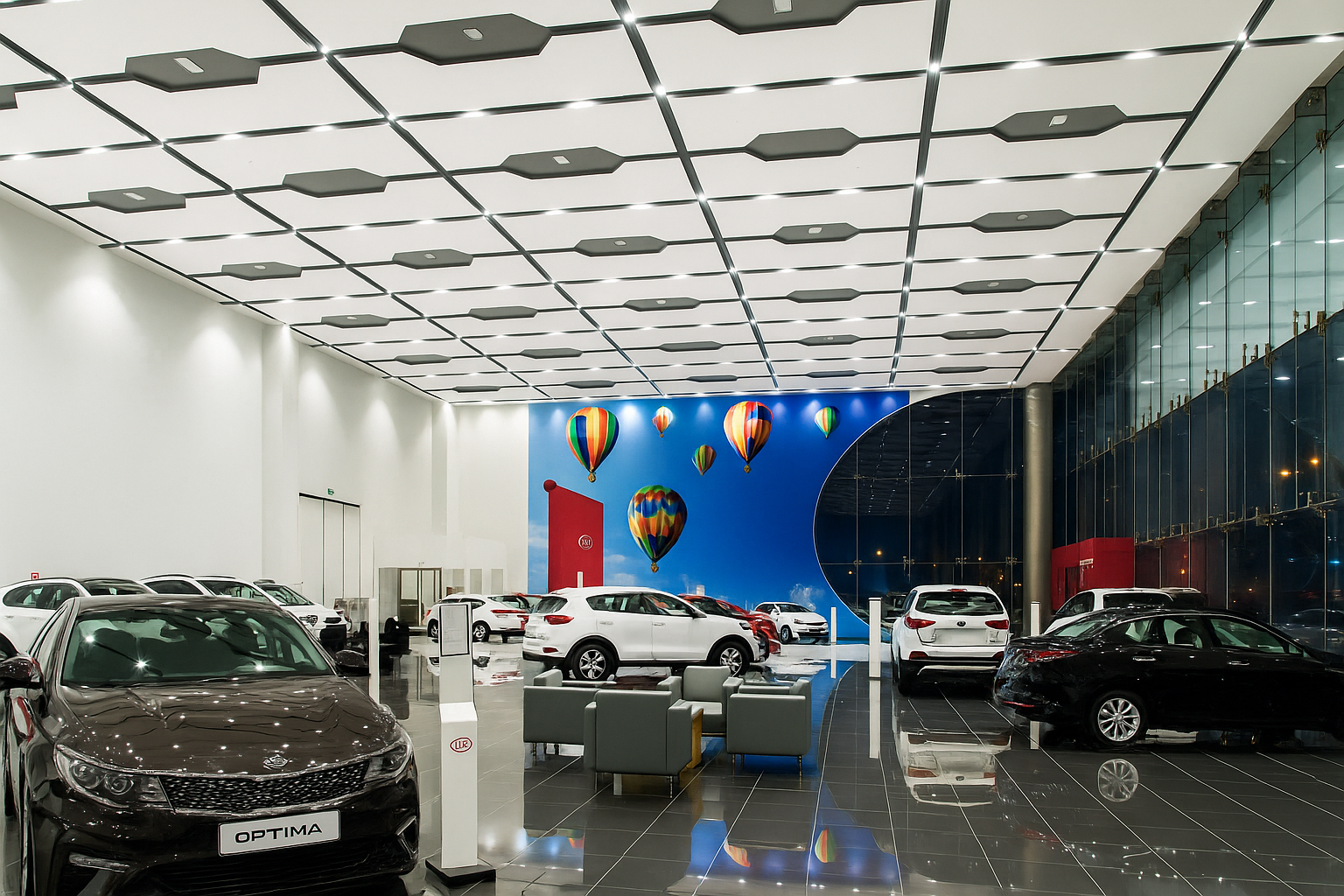 For the Kia Showroom in Tasjeel Village, Sharjah, our team delivered a refined lighting solution that blends visual clarity with modern automotive aesthetics. Working closely with the project’s architects and contractors, we ensured that every lighting element aligned with the showroom’s identity and enhanced the presentation of each vehicle. The result is a bright, dynamic, and welcoming environment where the lighting strengthens the brand experience, highlights key features, and creates a polished atmosphere throughout the space.