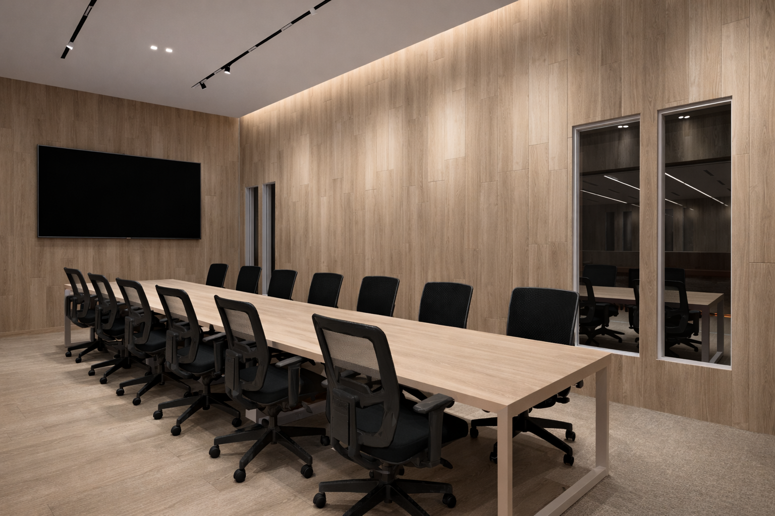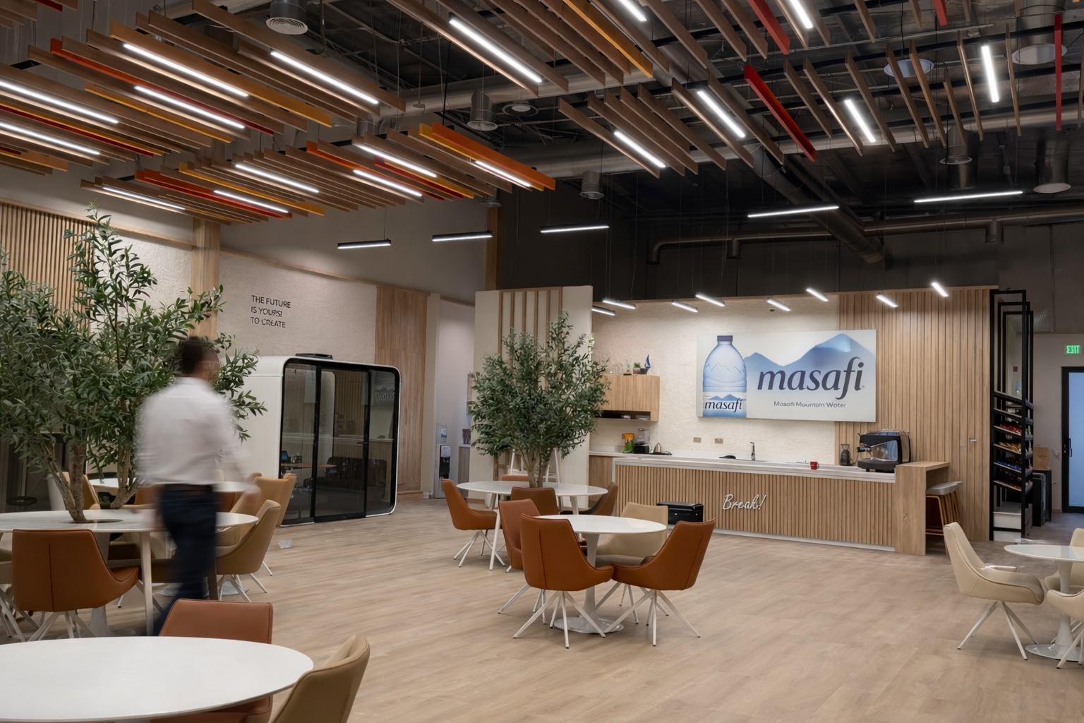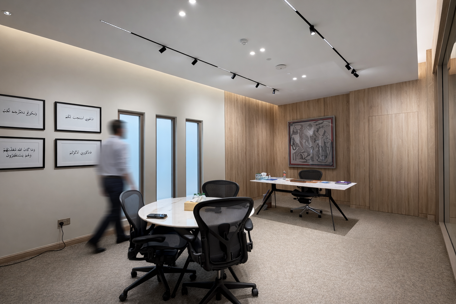 The Masafi Park Offices' lighting was thoughtfully planned to complement a contemporary business environment while honouring the location's significance as a famous national landmark. The project includes executive offices, meeting rooms, open workspaces, and the inspiration area. It begins with lux studies and a detailed lighting design. To create a space that was peaceful, effective, and visually consistent, clean, linear ceiling lighting was used throughout. With architects and designers in mind, the end result is a sophisticated yet practical office space that strikes a balance between comfort, performance, and architectural clarity.