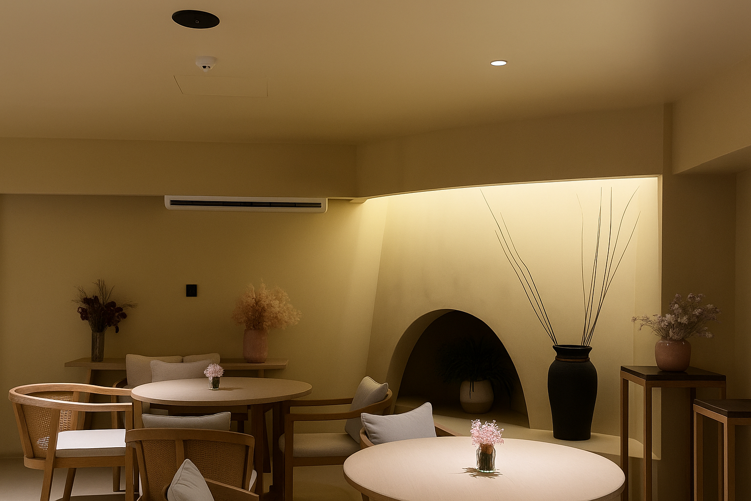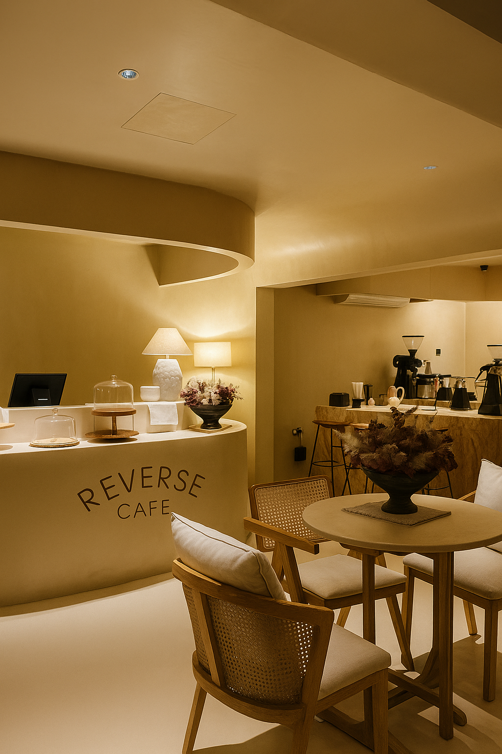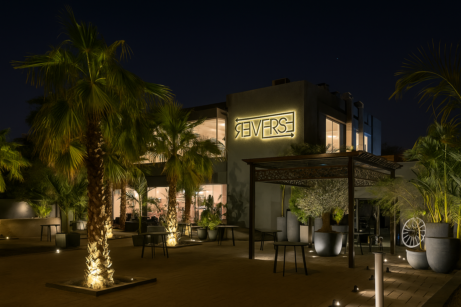 For Reverse Cafe in Al Ain, UAE, we created a lighting concept that enhances its modern and expressive atmosphere. The lighting brings focus to the cafe’s unique design elements, adding depth and warmth to the space while maintaining a clean, contemporary feel. By shaping an ambience that feels both vibrant and comfortable, the illumination supports the cafe’s identity and elevates the overall guest experience.