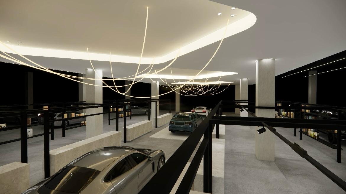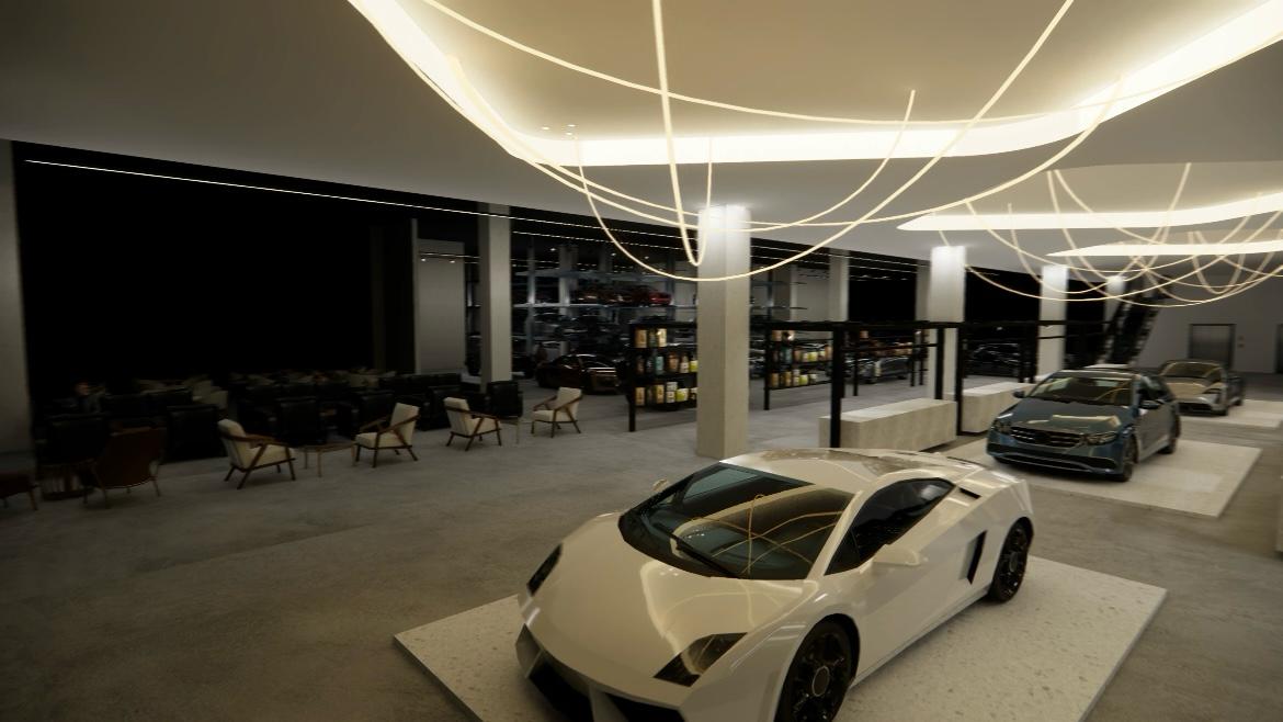The lighting concept is tailored to enhance the visual appeal of every vehicle on display while supporting the functional needs of the detailing process. It's a unique approach that blends aesthetics and performance in a way that elevates the customer experience.