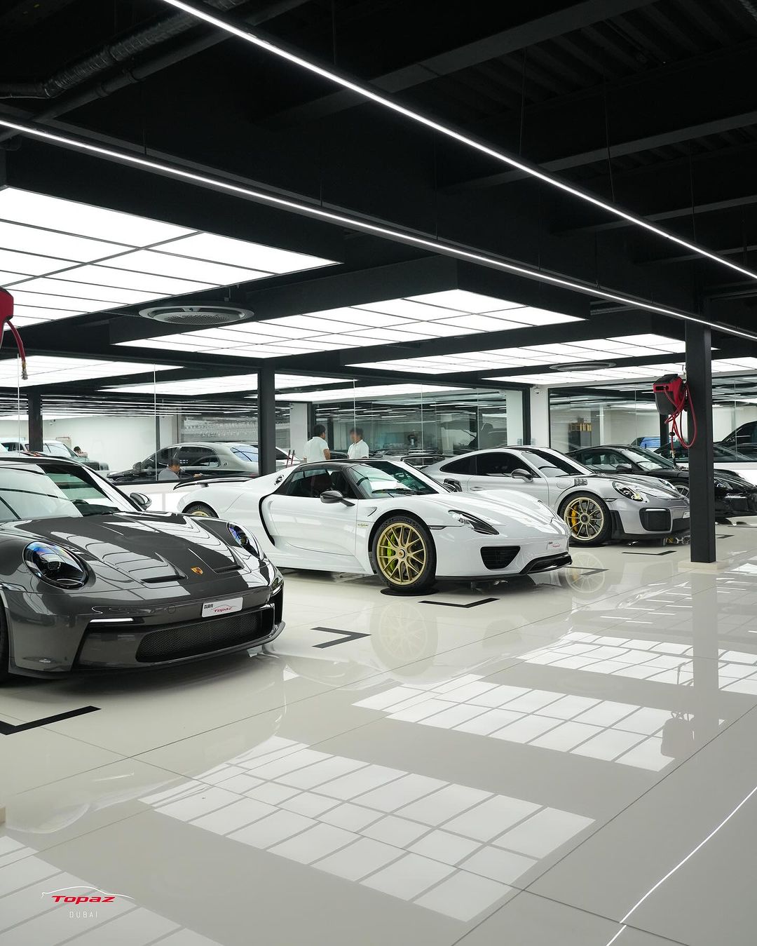 Topaz Detailing DXB's high-end atmosphere is enhanced by the precise lighting design our team implemented. We strategically illuminated the space to highlight the detailing workstations, creating a sleek, modern environment that emphasizes both the luxury of the vehicles and the meticulous craftsmanship. Our lighting ensures optimal visibility for detailers while enhancing the overall customer experience with a clean, polished aesthetic.