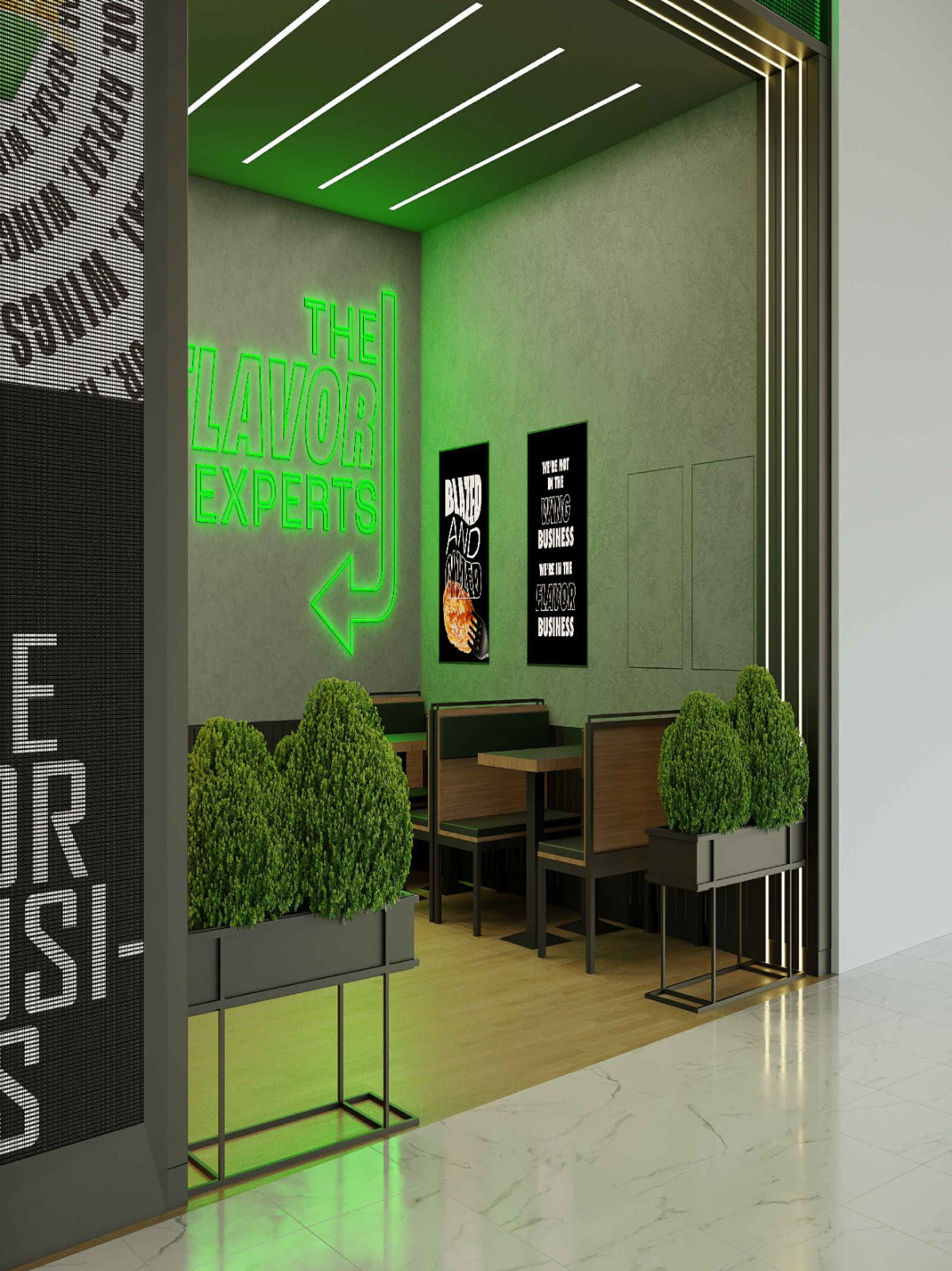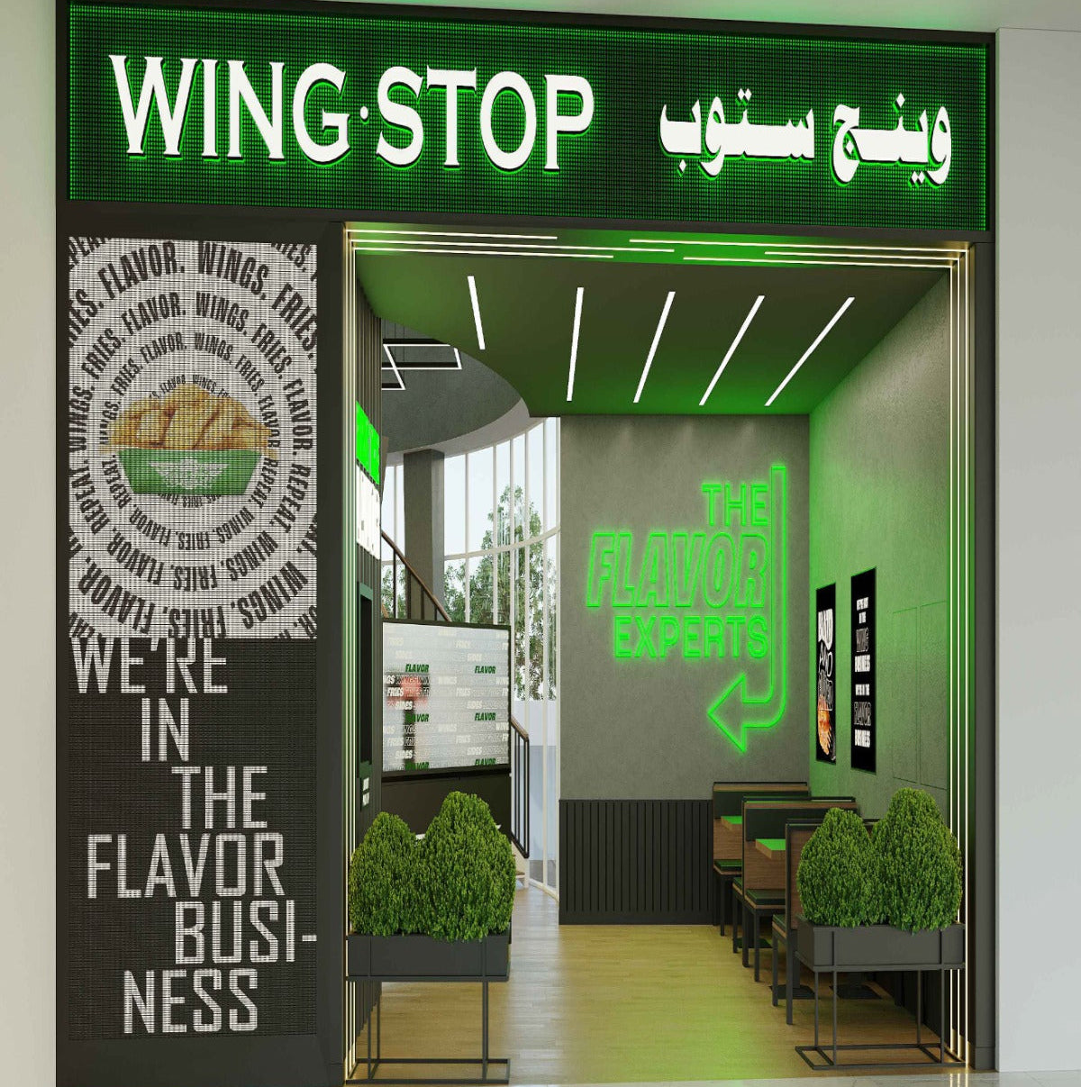 For Wingstop at Zakher Mall in Al Ain, UAE, we are developing a lighting scheme that reinforces the brand’s bold, energetic dining environment. The concept enhances the restaurant’s signature colors, graphic elements, and modern interiors, creating a lively yet comfortable atmosphere. With a mix of focused highlights and balanced ambient levels, the ongoing design aims to deliver a vibrant setting that elevates the guest experience and stays true to Wingstop’s dynamic identity.