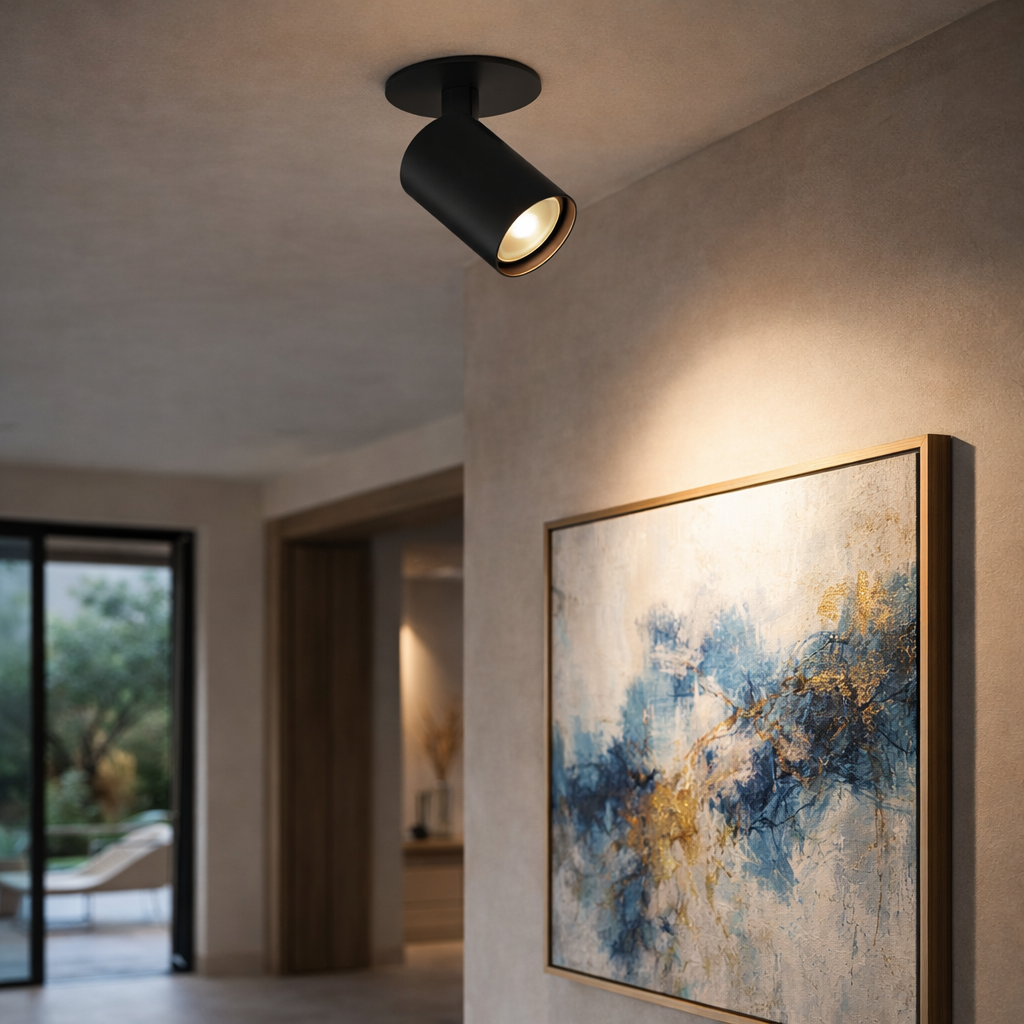 Available in Pearl White for a clean, modern finish or Solid Black for a bold, architectural statement, the adjustable spotlight integrates seamlessly into a wide range of interior styles.